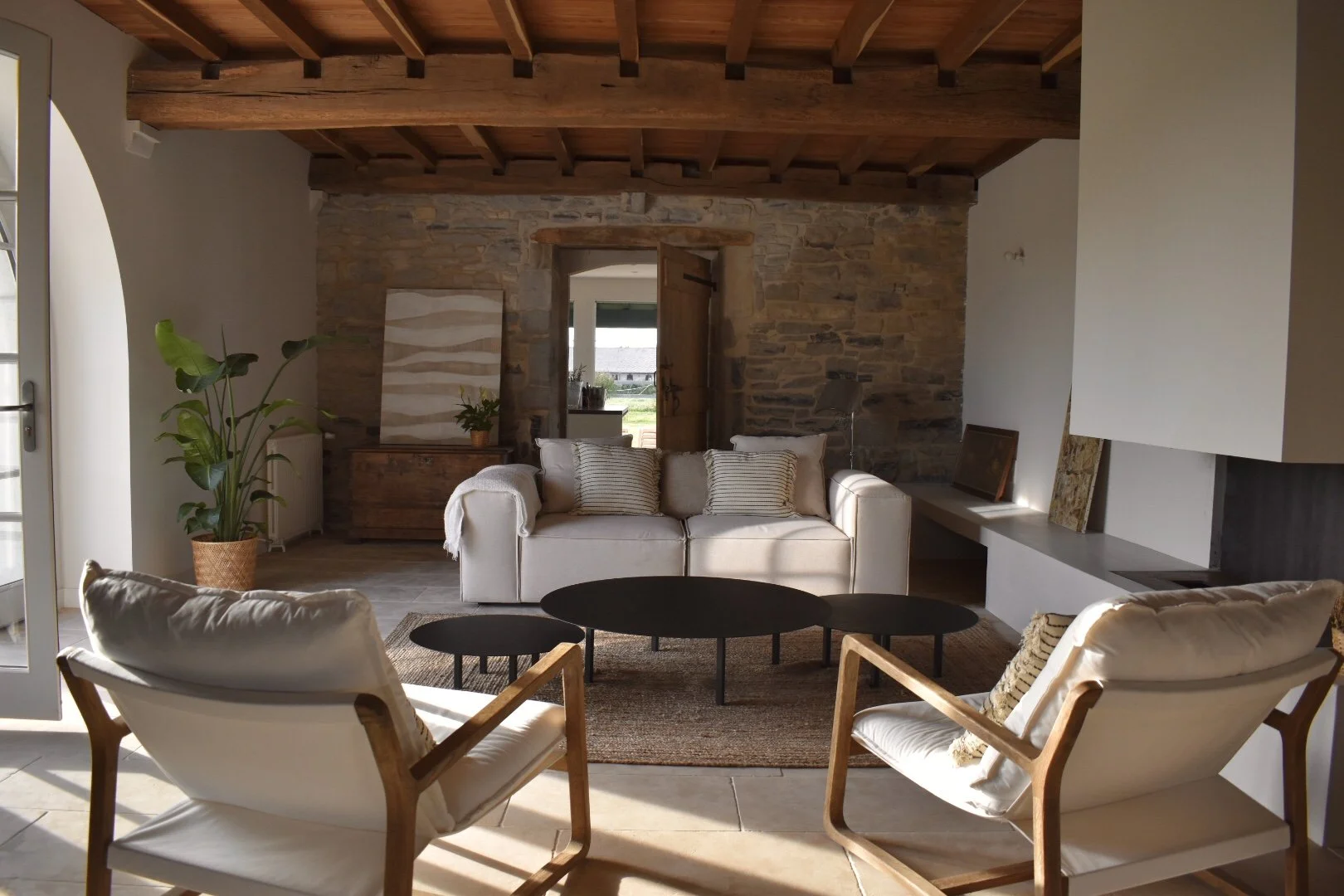 Projet intérieur et suivi des travaux de rénovation sur une maison individuelle au bord de la Nive à Sames. L’objectif était de donner une seconde vie à cette maison, tout en respectant ses principaux atouts et son charme d’origine. Pour cela nous avons sublimé les espaces avec des matériaux contemporains, pour les remettre au gout du jour, mais également pour améliorer sa performance énergétique. L’équilibre entre ces deux problématiques était primordial tout au long de ce projet. Nous avons travaillé en étroite collaboration avec notre client afin de trouver les solutions adéquates sur le plan technique et esthétique. Le choix du mobilier a été effectué en juxtaposant éléments d’origine et ameublement moderne tout en simplicité avec une majorité de matériaux bruts.
